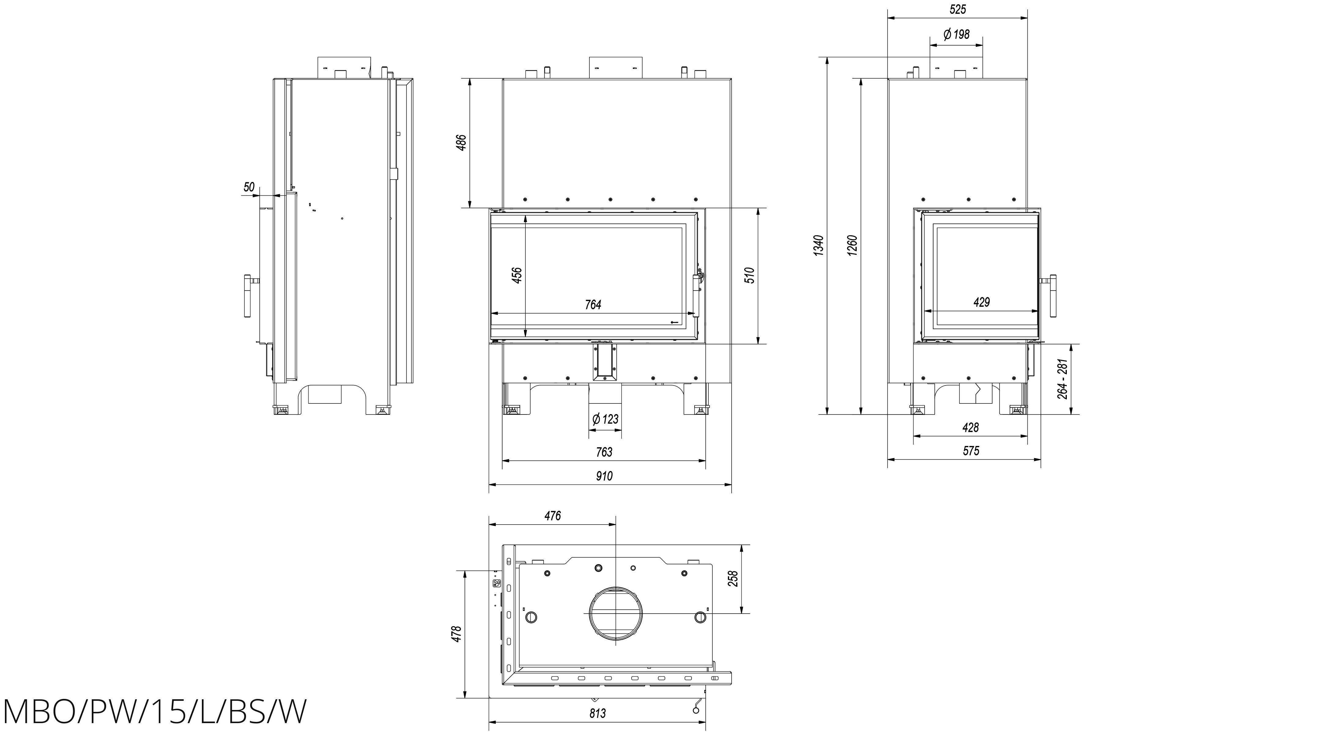 Каминная топка Kratki MBO/PW/15/L/BS/W