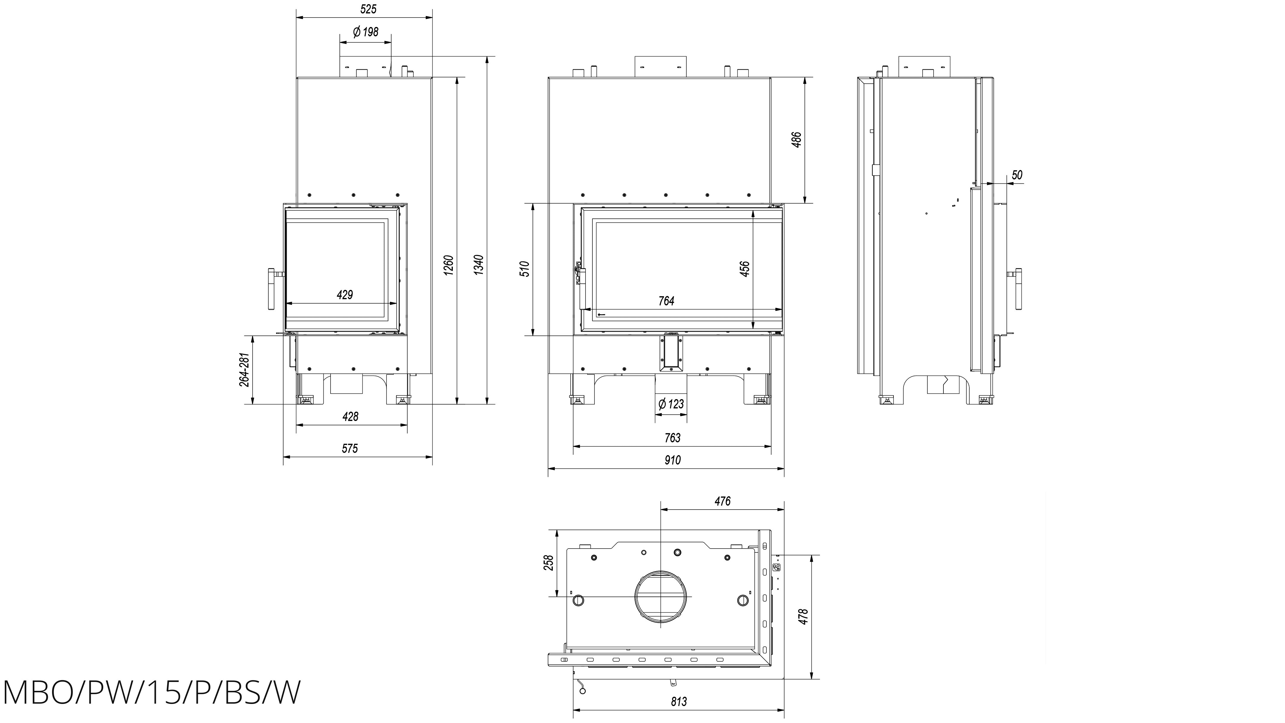 Каминная топка Kratki MBO/PW/15/P/BS/W
