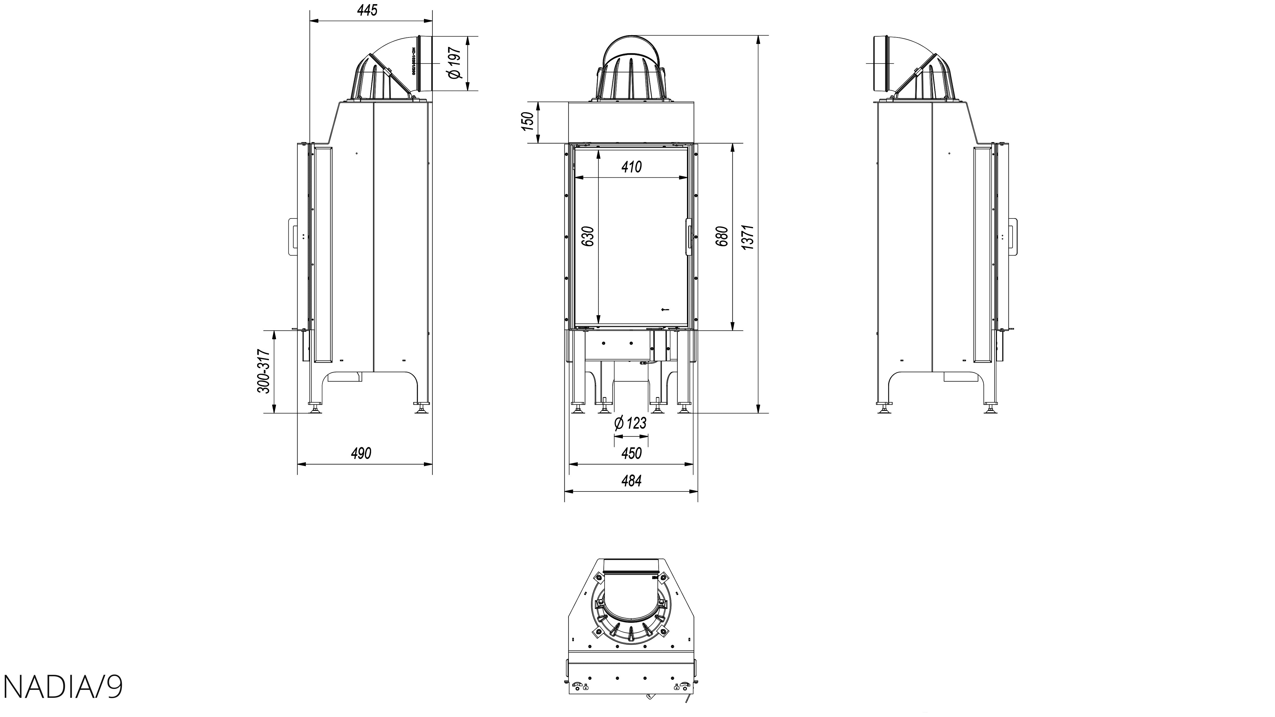- Можно применять при различных монтажных условиях благодаря регулируемым ножкам и подвижному дымоходному отверстию с регулировкой установки 360°.