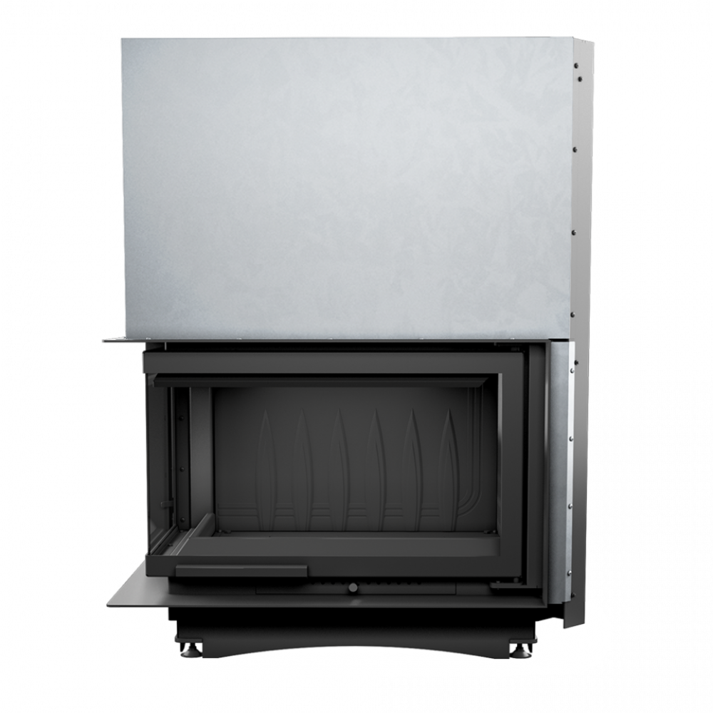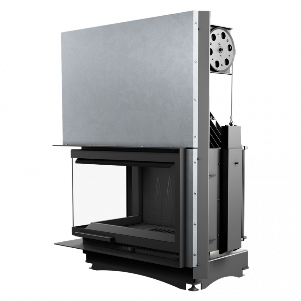 - Двойная система открывания дверец вверх (гильотина) и в сторону. Дверцы, что поднимаются и опускаются, облегчают наполнение древесиной, а механизм, который позволяет боковое открывание, позволяет очистить стекло более эффективно.