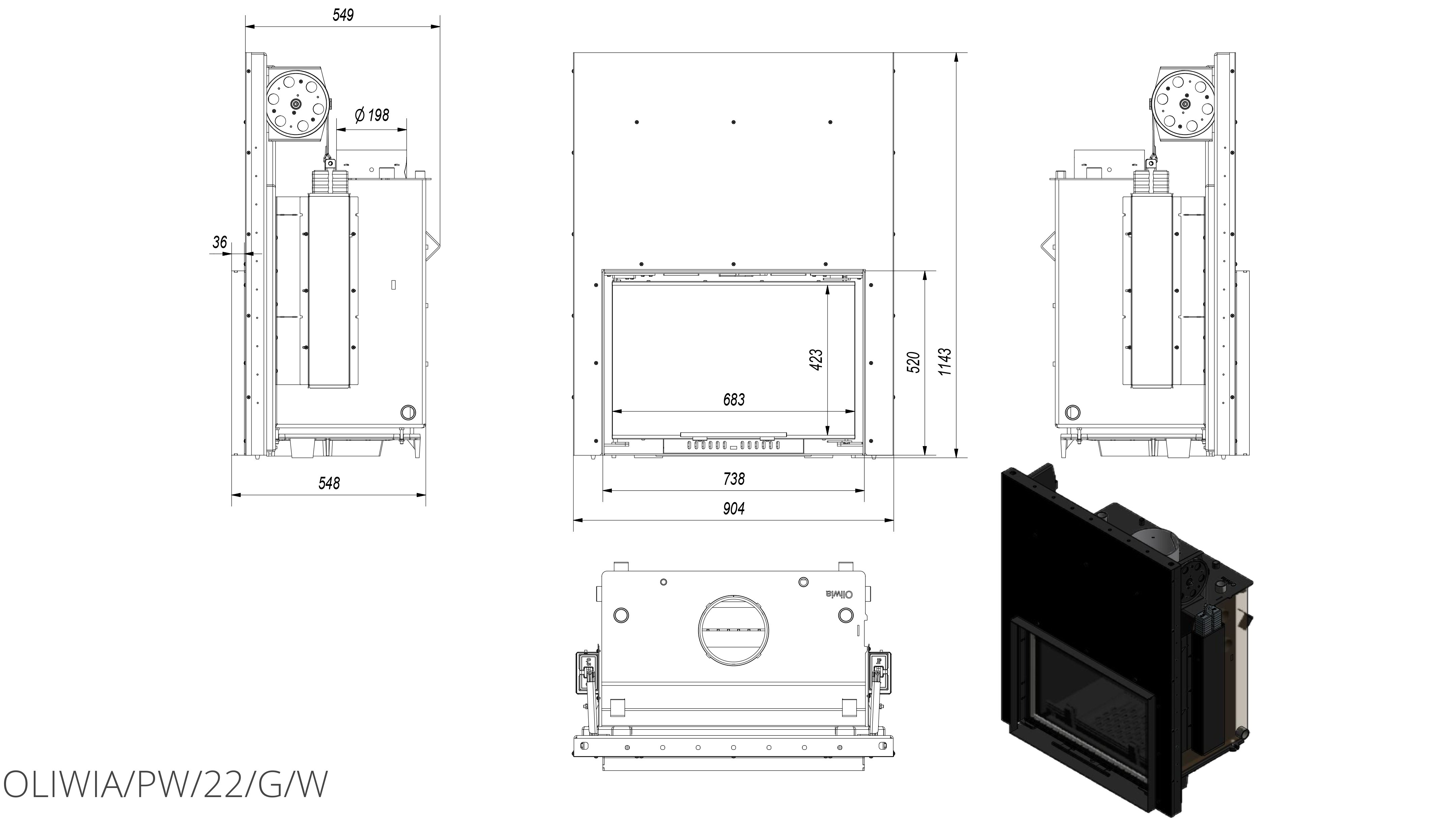 Каминная топка Kratki Oliwia/PW/22/G/W с водяным контуром, в которой используемые технологии и материалы создают эффективную, экономичную и экологическую топку с высокой эффективностью.
