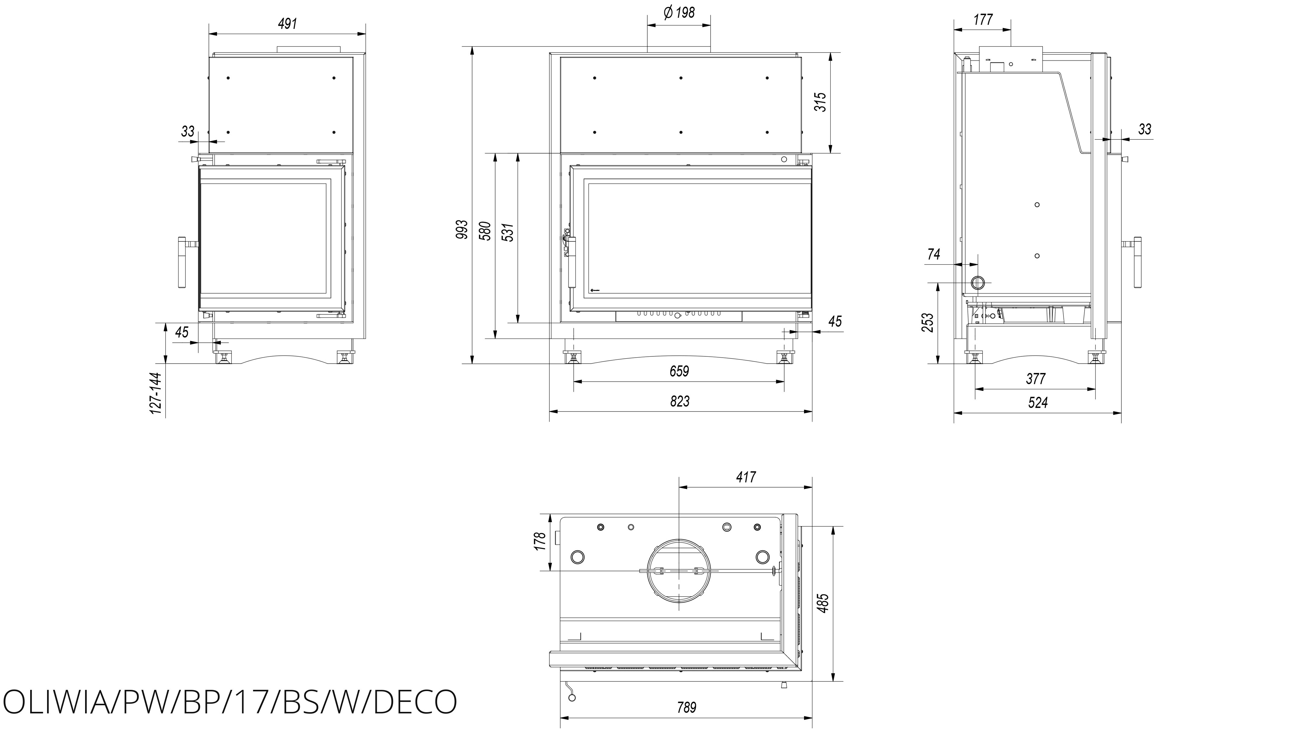 Каминная топка Kratki Oliwia/PW/BP/17/BS/W/Deco