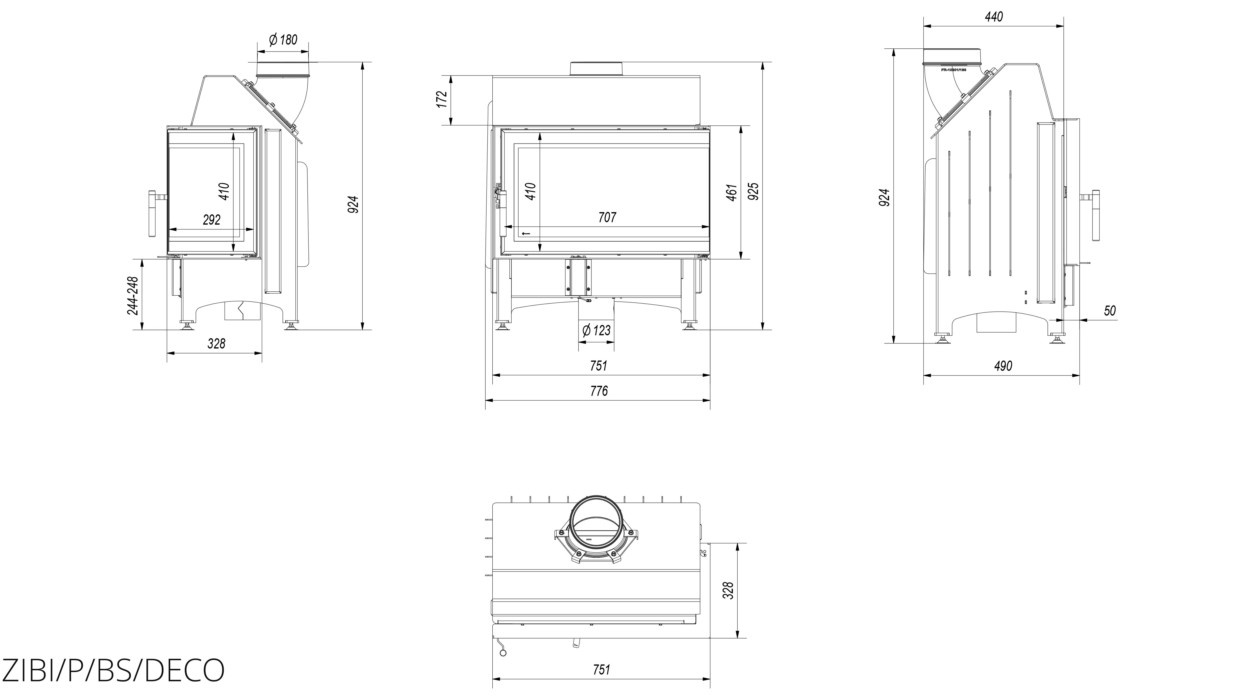 • Модель оснащена подвижным дымоходным отверстием, так что во время монтажа нет необходимости покупать дополнительные колена. Можно легко подобрать угол подключения топки к каминной инсталляции.