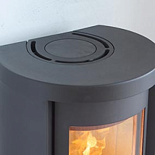 • Подача воздуха в топку происходит только извне с помощью встроенного подвода внешнего воздуха ø 125 мм. Его регулирование осуществляется с помощью дроссельной заслонки с одним регулятором, расположенным под дверцами, что не допускает ошибки при неправильном использовании. Целый механизм действует очень тихо и бесперебойно.