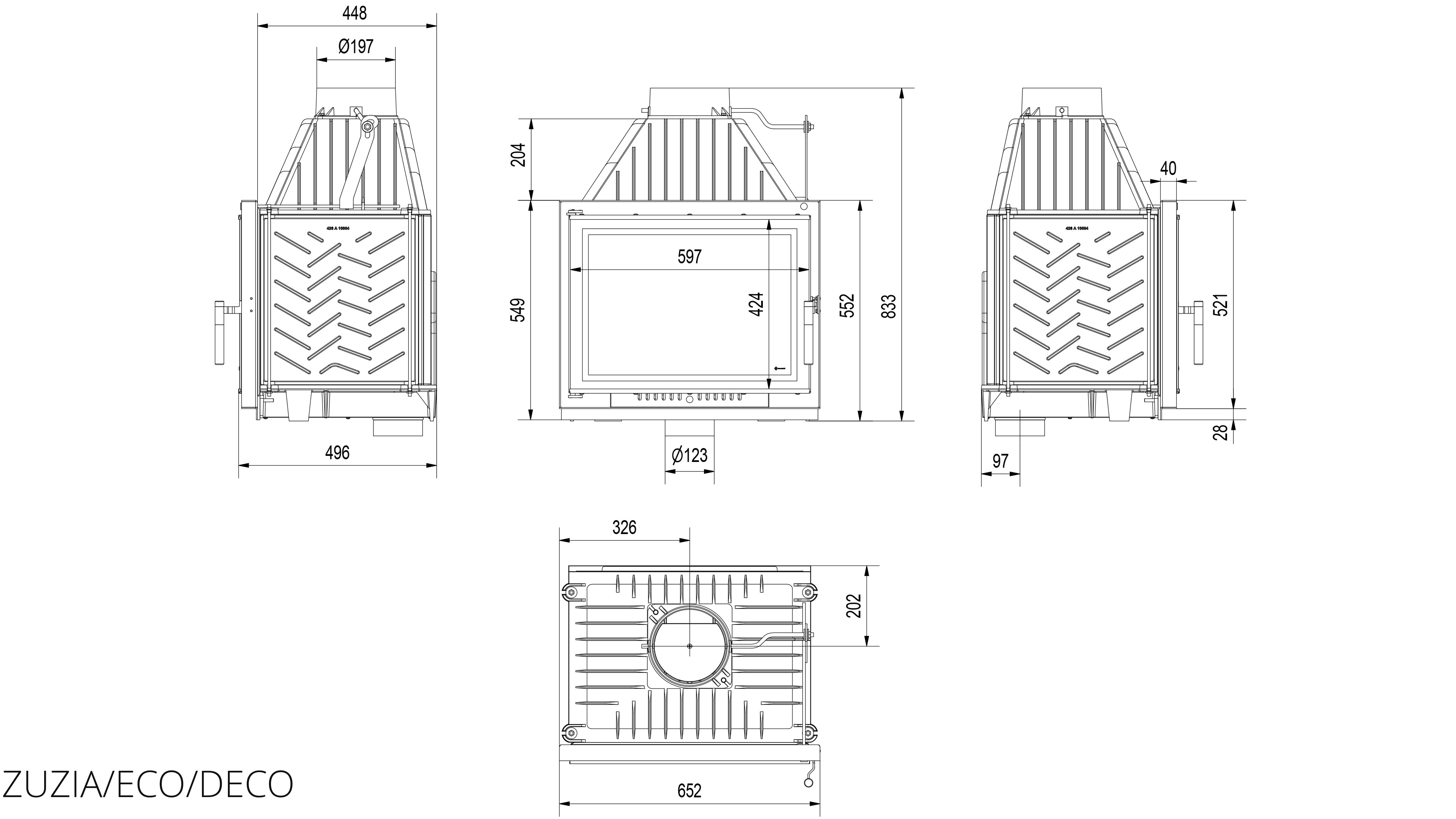 Оборудование из серии Kratki Zuzia/Eco/Deco - это каминные топки с просторной чугунной камерой сгорания, дополнительно оборудованы с внешней стороны плотно расположенными радиаторами. Благодаря применению такого решения поверхность теплоотдачи в окружающую среду есть значительно больше. Тем самым это увеличивает массу самого устройства.