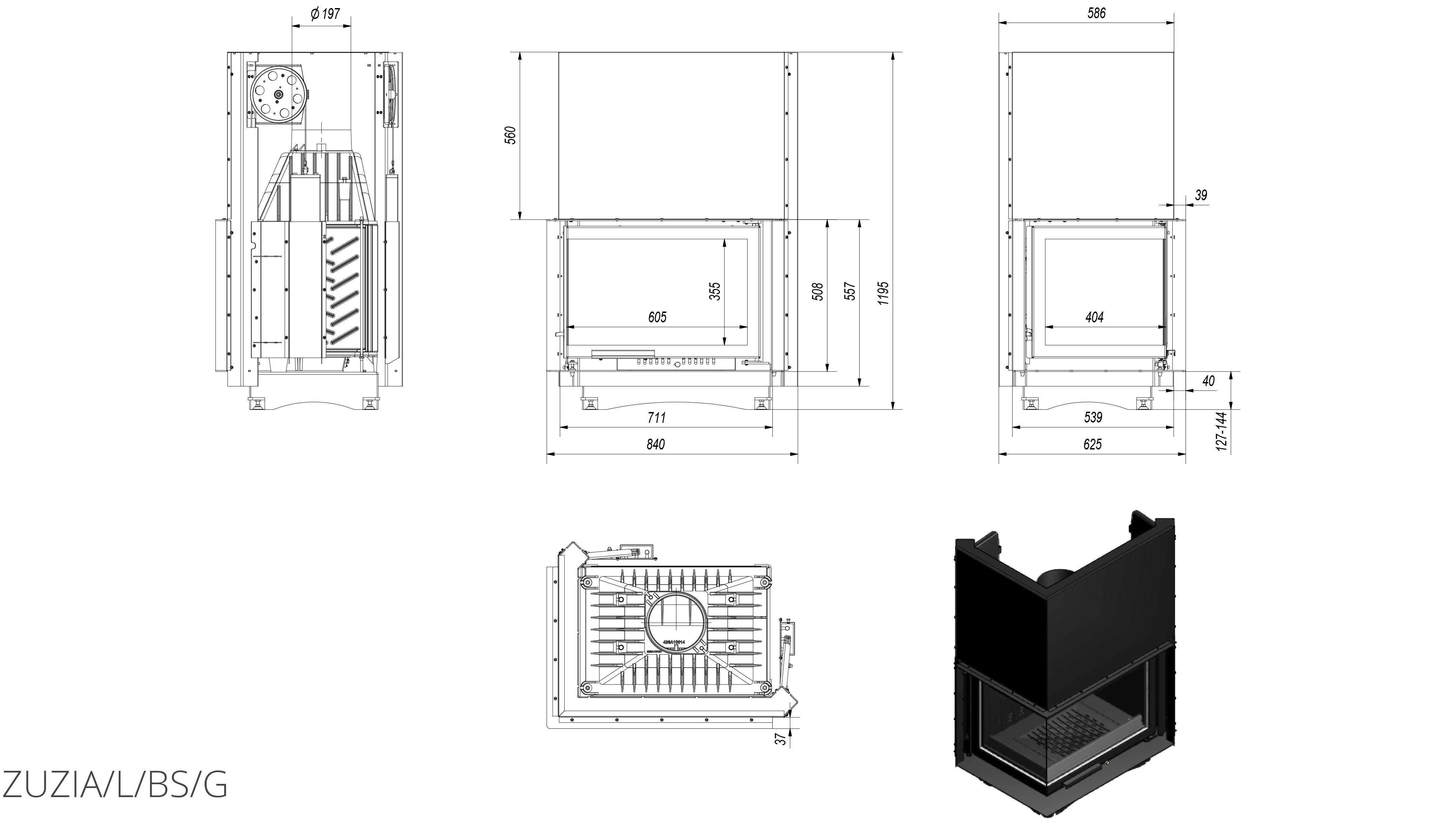 Zuzia/L/BS/G (Г-образное стекло слева, гильотина) – популярная серия встраиваемых каминных топок польского производителя Kratki. Топка-вставка с угловым стеклом без перегородок с левой стороны и вертикальным подъемом дверцы.