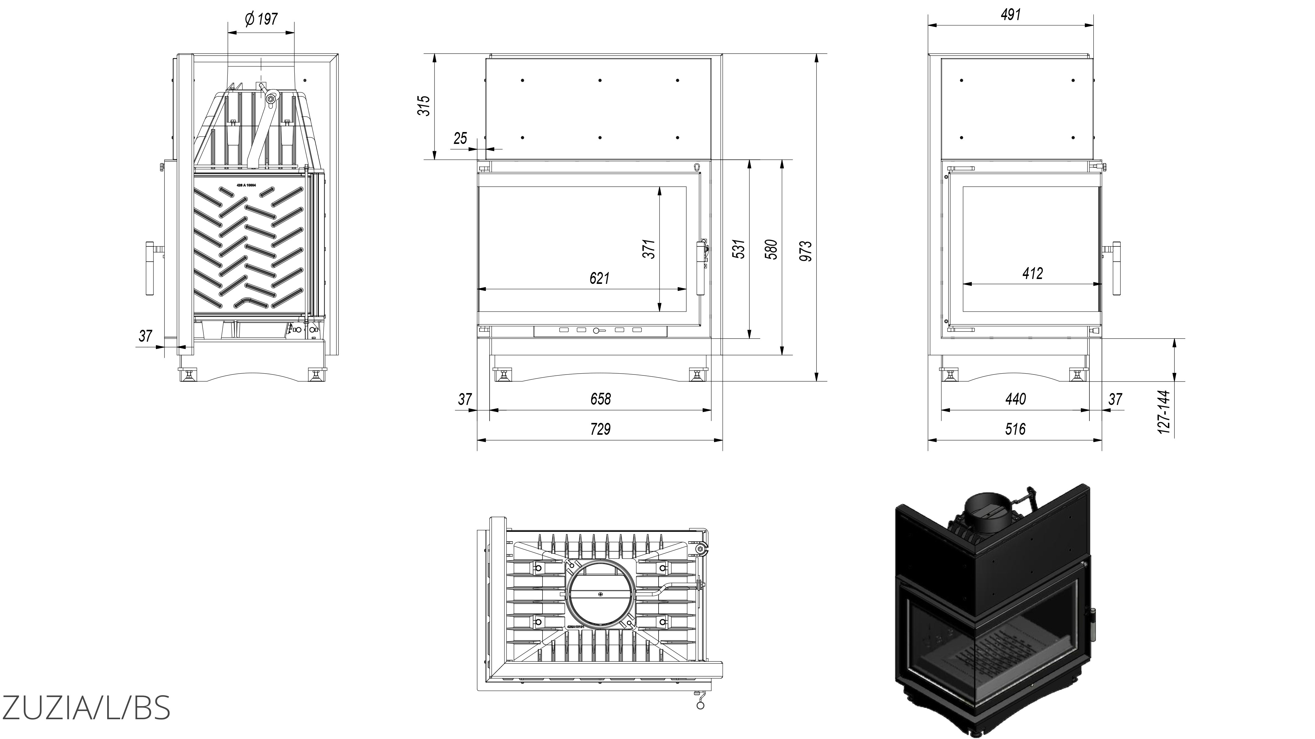 Zuzia L/BS (Г-образное стекло слева) - популярная серия встраиваемых каминных топок польского производителя Kratki. Топка-вкладыш с угловым стеклом, которая идеально подойдет для установки в пристенном камине. У данной модели Г-образная стеклянная дверца расположена с левой стороны. Zuzia L/BS – это чугунная топка польского производства с высоким дымосборником, хорошим КПД и прекрасным обзором.