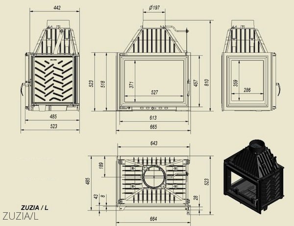 Чугунная каминная топка Kratki Zuzia/L (стекло слева) с дополнительным стеклом справа. Конструкция данной топки позволяет установить ее в углу помещения. Окно спереди и справа. Прямые стекла. Материал чугун. Достаточно высокий КПД. Оснащена зольником и подиумом для камина.