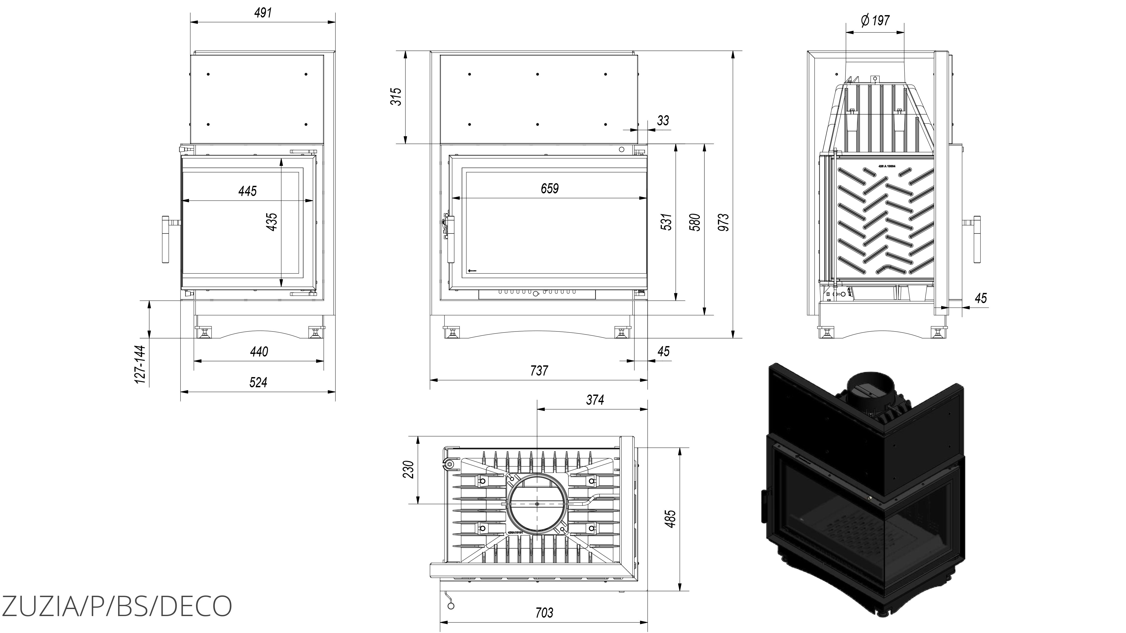 Каминная топка Kratki Zuzia/P/BS/Deco