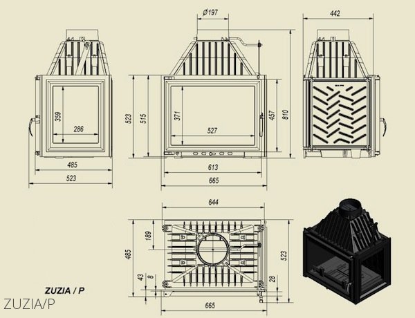 Чугунная каминная топка Kratki Zuzia/P (стекло справа) с дополнительным стеклом справа. Конструкция данной топки позволяет установить ее в углу помещения. Окно спереди и справа. Прямые стекла. Материал чугун. Достаточно высокий КПД. Оснащена зольником и подиумом для камина.