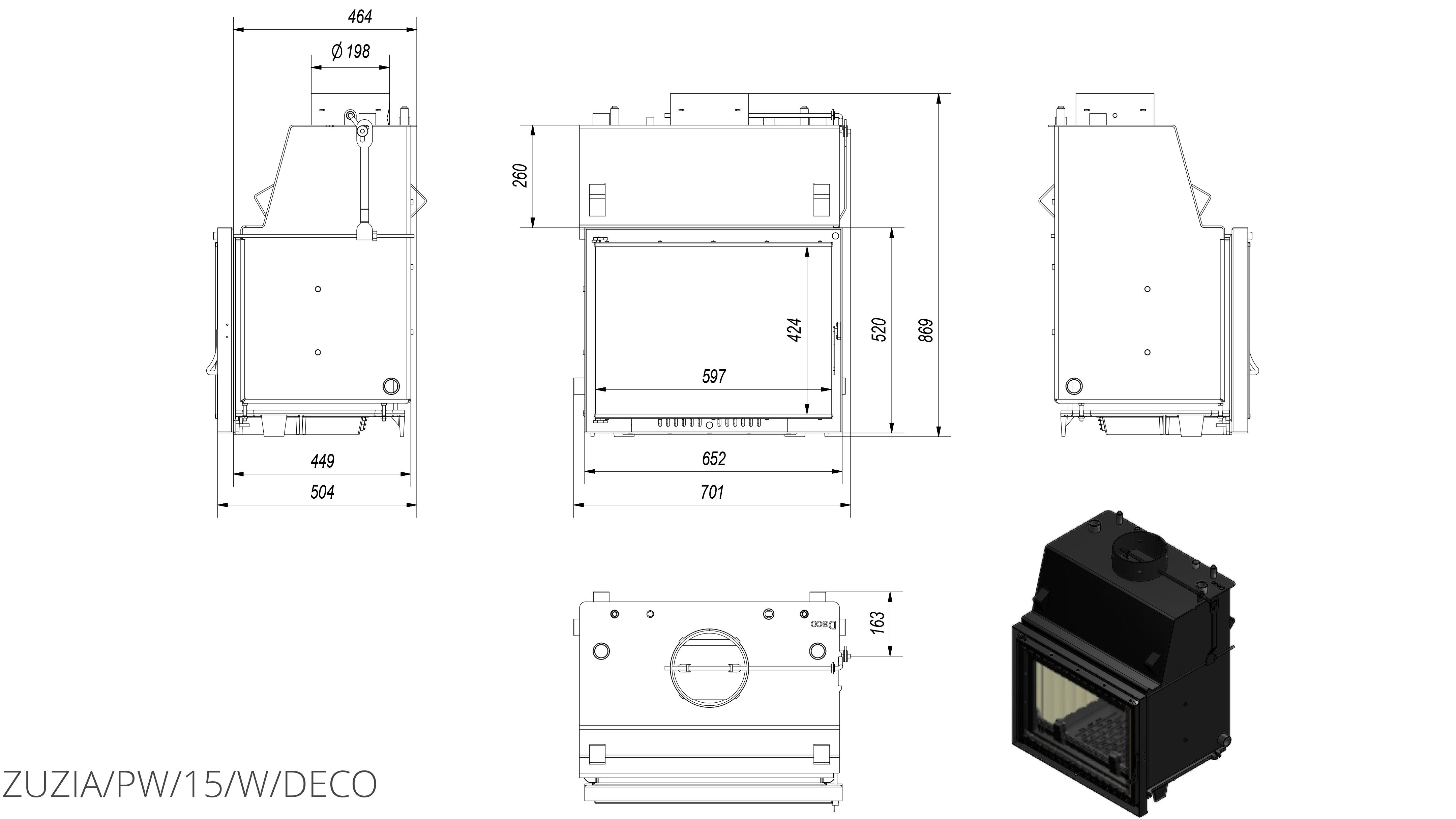 Каминная топка с водяным контуром Kratki Zuzia/PW/15/W/Deco (змеевик), в которой используемые технологии и материалы создают эффективную, экономичную и экологическую топку с высокой эффективностью.