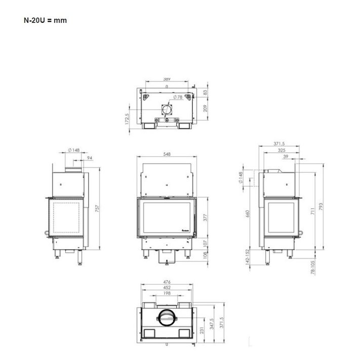 Дровяная каминная топка Nordpeis N-21U черная черная выполнена из тугоплавкой стали и отличается современным дизайнерским исполнением. Преимуществом данной модели являет трехстороннее остекление камеры сгорания, что обеспечивает широкий обзор за процессом горения. Топка оборудована системой вторичного дожига, которая значительно повышает эффективность прибора.