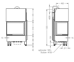 В каминной топке реализована «технология вторичного горения». Суть его в том, что сначала горят дрова, затем остаточные продукты - дымовые газы с твердыми частицами. Воздух для освещения и горения проникает в древесину снизу.
