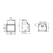 Корпус каминной топки выполнен из жаропрочной стали, колосники и патрубки из чугуна.