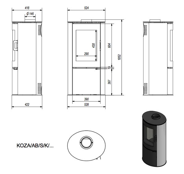изготовлены из стали. Дровяная печь koza AB/S/K облицована кафельными панелями. Ручка дверцы современного дизайна (опционально