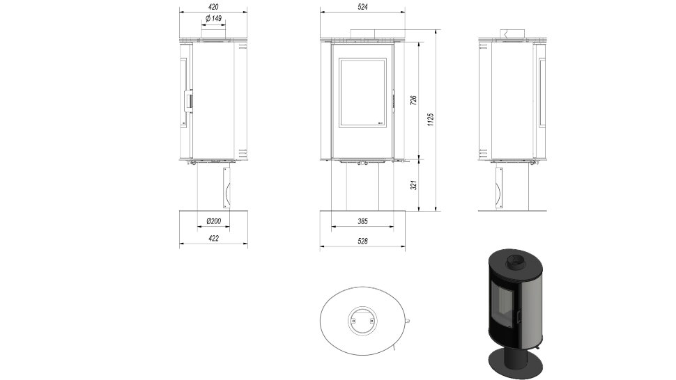 • Диаметр дымохода, (мм)