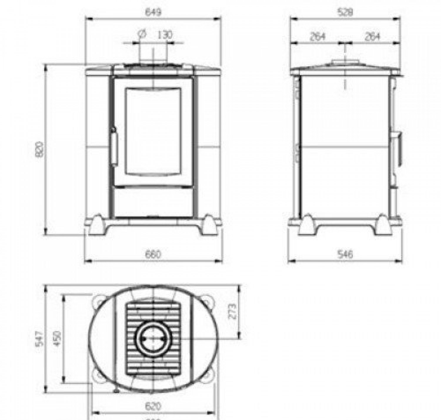- Диаметр дымохода, (мм) 130 мм.