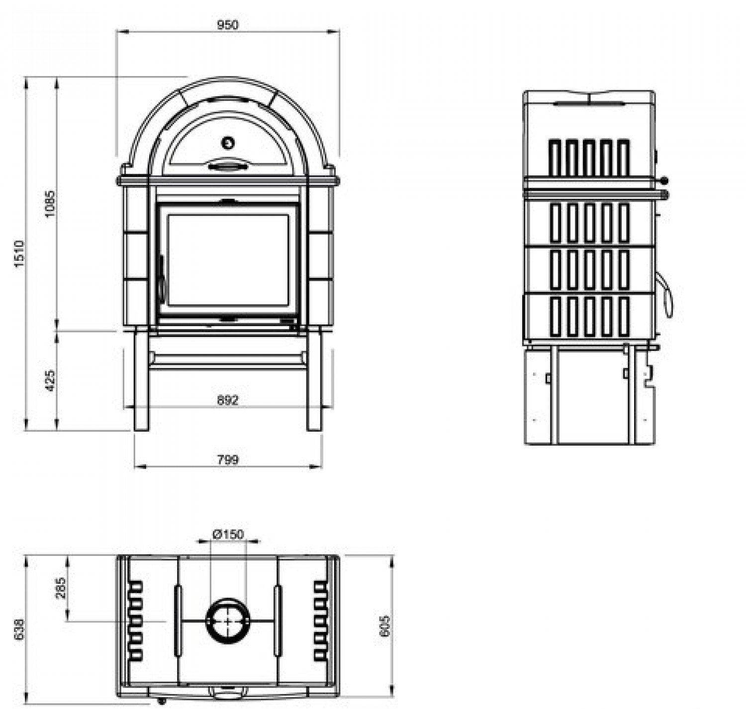 - Диаметр дымохода, (мм) 150 мм.