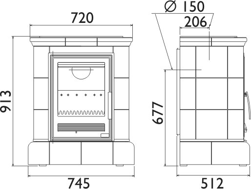 - Диаметр дымохода, (мм) 150