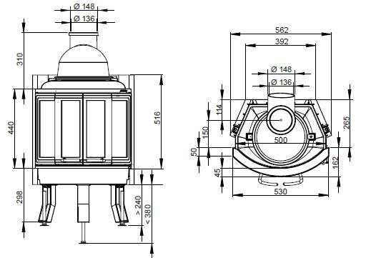 - Диаметр дымохода, (мм) 150