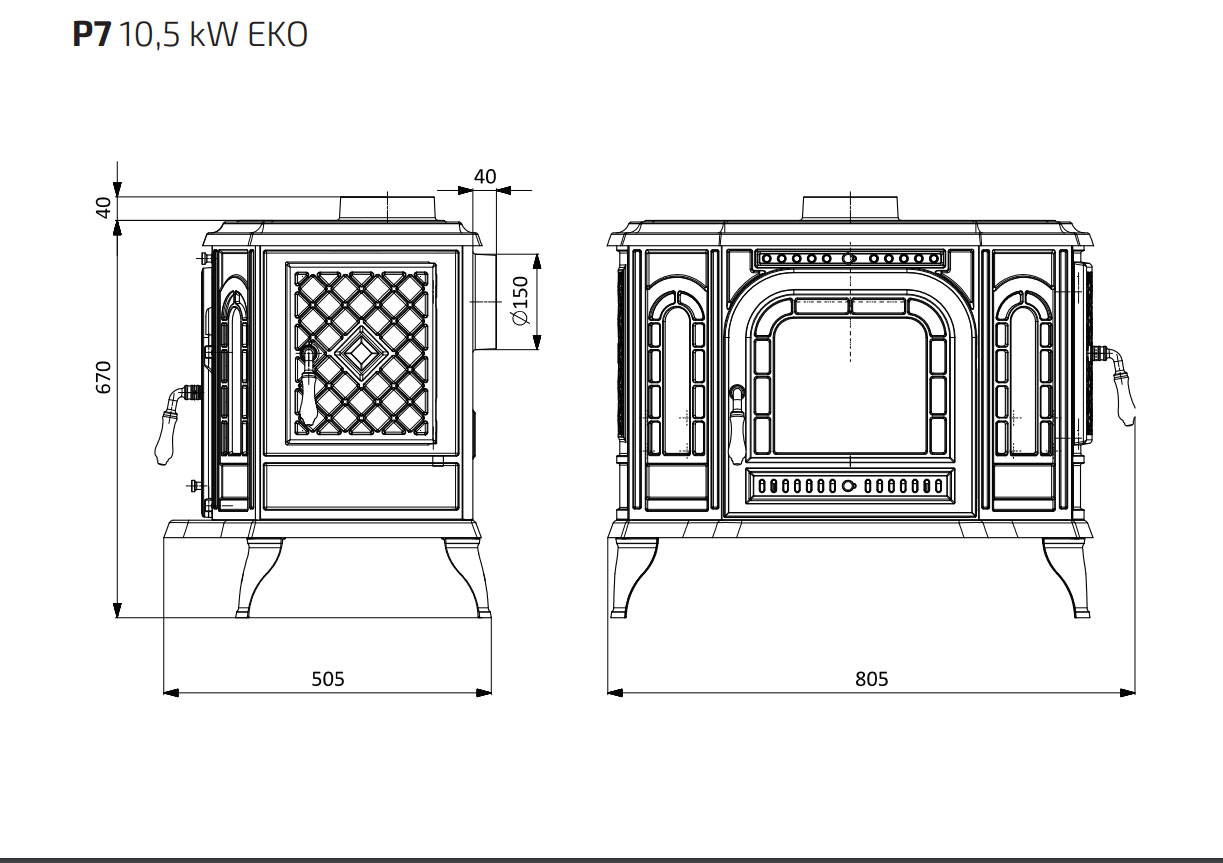 • Топка изготовлена из высококачественного чугуна с минимальной толщиной стенки 10 мм.