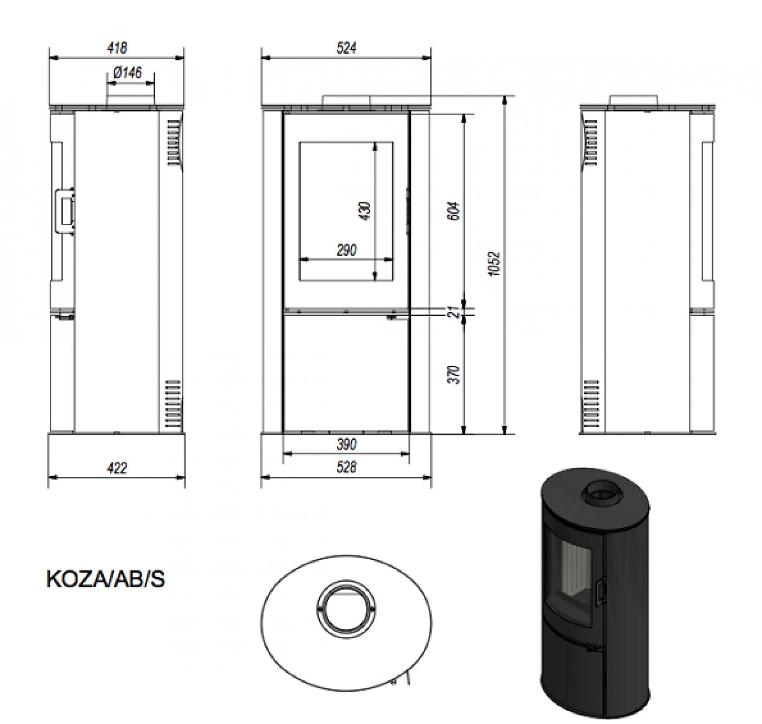 Печь-камин Koza/AB/S/DR сталь