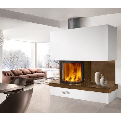 На фото представлена модель в цвете Tabacco с банкеткой. Доступна дровяная топка ME 84/70T.