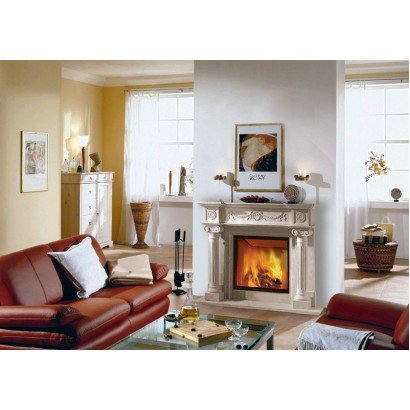 Портал из натурального камня (выбор камня из каталога). В комплект входят декоративные отделочные рамки, необходимые для оптимального монтажа топки.