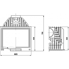 | Чугунный дымосборник Упрощённое соединение с дымоходом 0-90° | Колосниковая решетка Удобная ручка для поднятия решётки, не нужен специальный ключ | Регулятор подачи воздуха Нет необходимости в ключе для регулировки подачи воздуха - нет опасности поцарапать топку | Адаптер приточного воздуха Возможность внешней подачи воздуха на горение из подвала, из соседнего помещения или с улицы. Диаметр патрубка 125 мм. |
