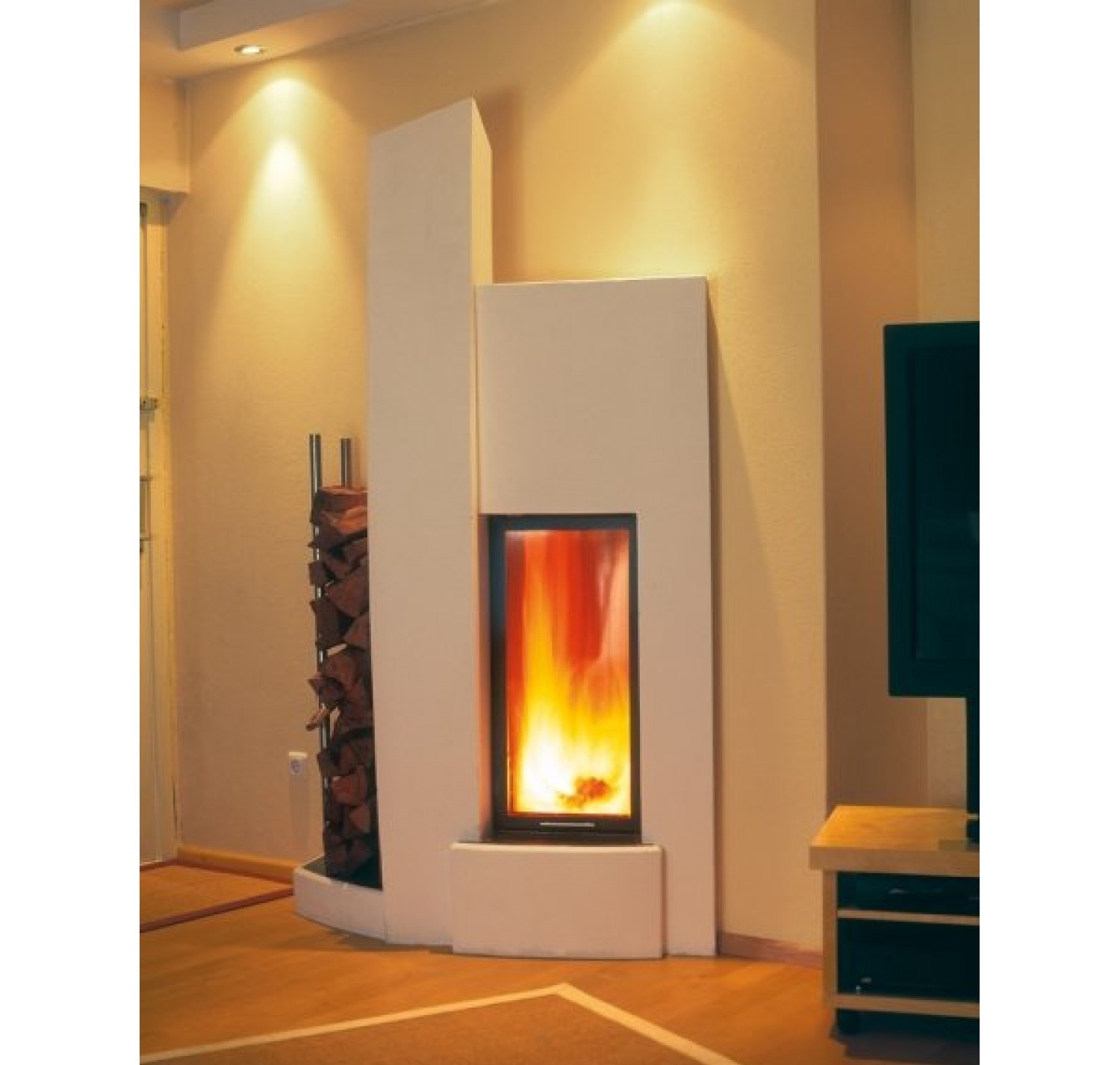 Несмотря на небольшую ширину модель обеспечивает эффектный вид огня. Стремящееся вверх под силой тяги пламя занимает весь объем камеры горения. Вытянутая форма топки Arte 1Vh 4s позволяет установить камин даже у очень узкой стены. Неширокий и вертикальный фасад каминной топки визуально увеличивает высоту помещения.