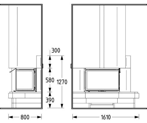 Цена указана за камин в стандартном исполнении (см. чертеж) из указанных материалов без топки.