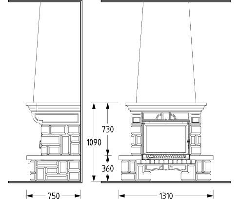 Цена указана за камин в стандартном исполнении (см. чертеж) из указанных материалов без топки.