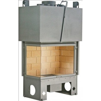 Топка Lateral 901 выполнена из легированной стали. Ширина очага 800 мм, глубина очага 340 мм. Высота видимой части пламени 403 мм. Очаг выложен кирпичными блоками без швов. Размер блока 110х220 мм. Подъемная ручка двери прямая 35 см.