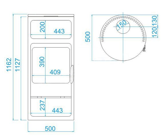 - Диаметр дымохода, (мм) 150