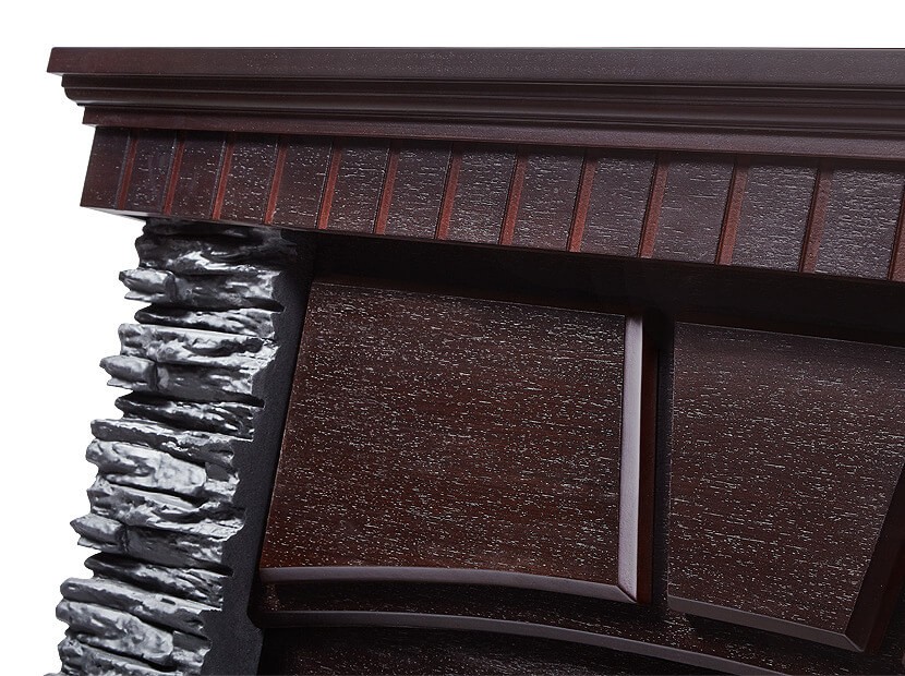 В серии порталов Porto 25 (камень сланец черный, шпон темный дуб) дизайнеры воплотили дух и очарование тихих городков с побережья Атлантического океана. По краям портал обрамлен массивными пилястрами, чья каменная структура из сланца пенится и вскипает в рельефном рисунке, создавая ощущение океанского прибоя. Над очагом Electrolux EFP/P-2520LS размещен молдинг с объемными элементами. Для гармонии именно с Вашим интерьером, камин в сборе Electrolux Porto 25 может быть исполнен в следующих цветовых решениях: