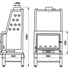 - Размеры очага ШхГхВ, (мм) 780x250x630