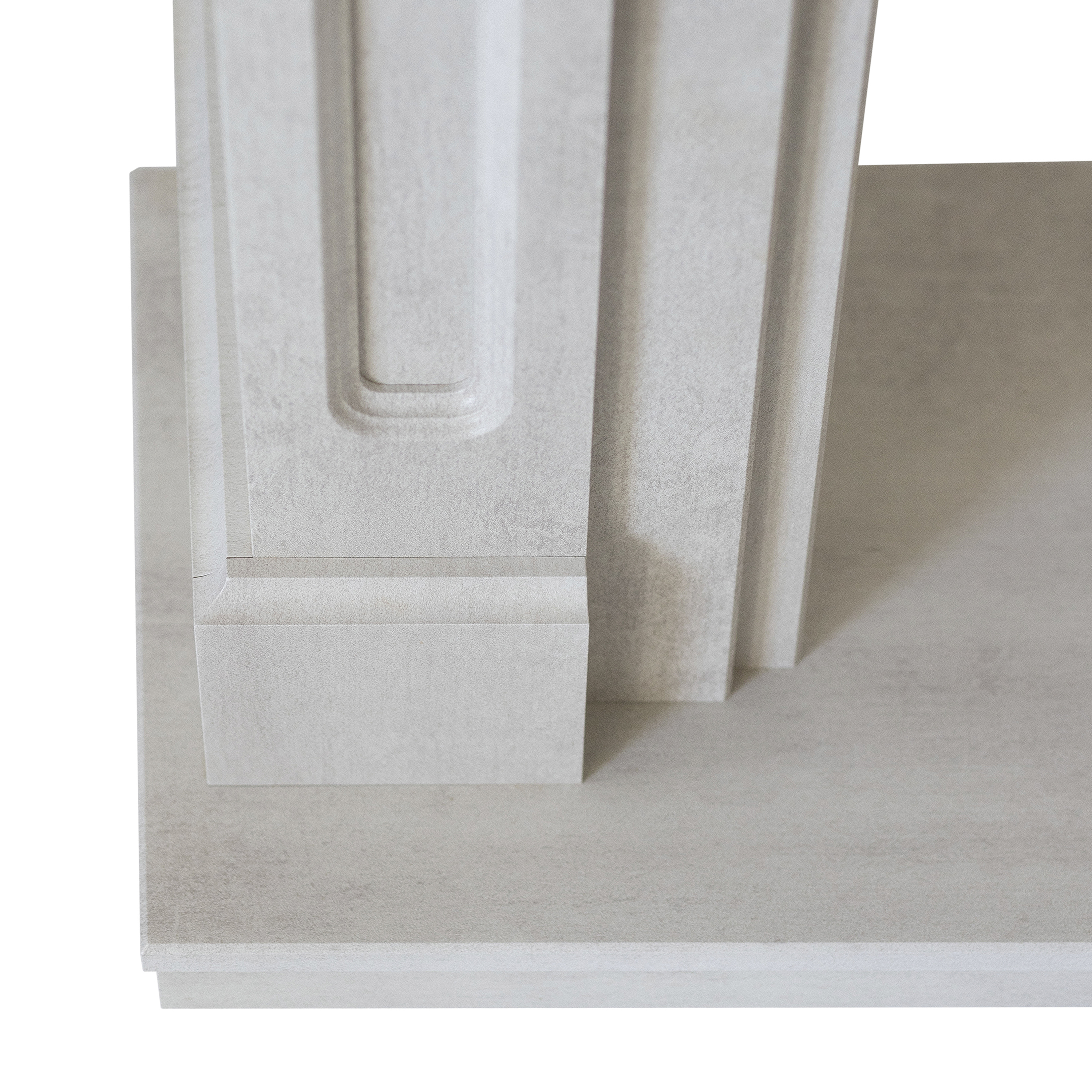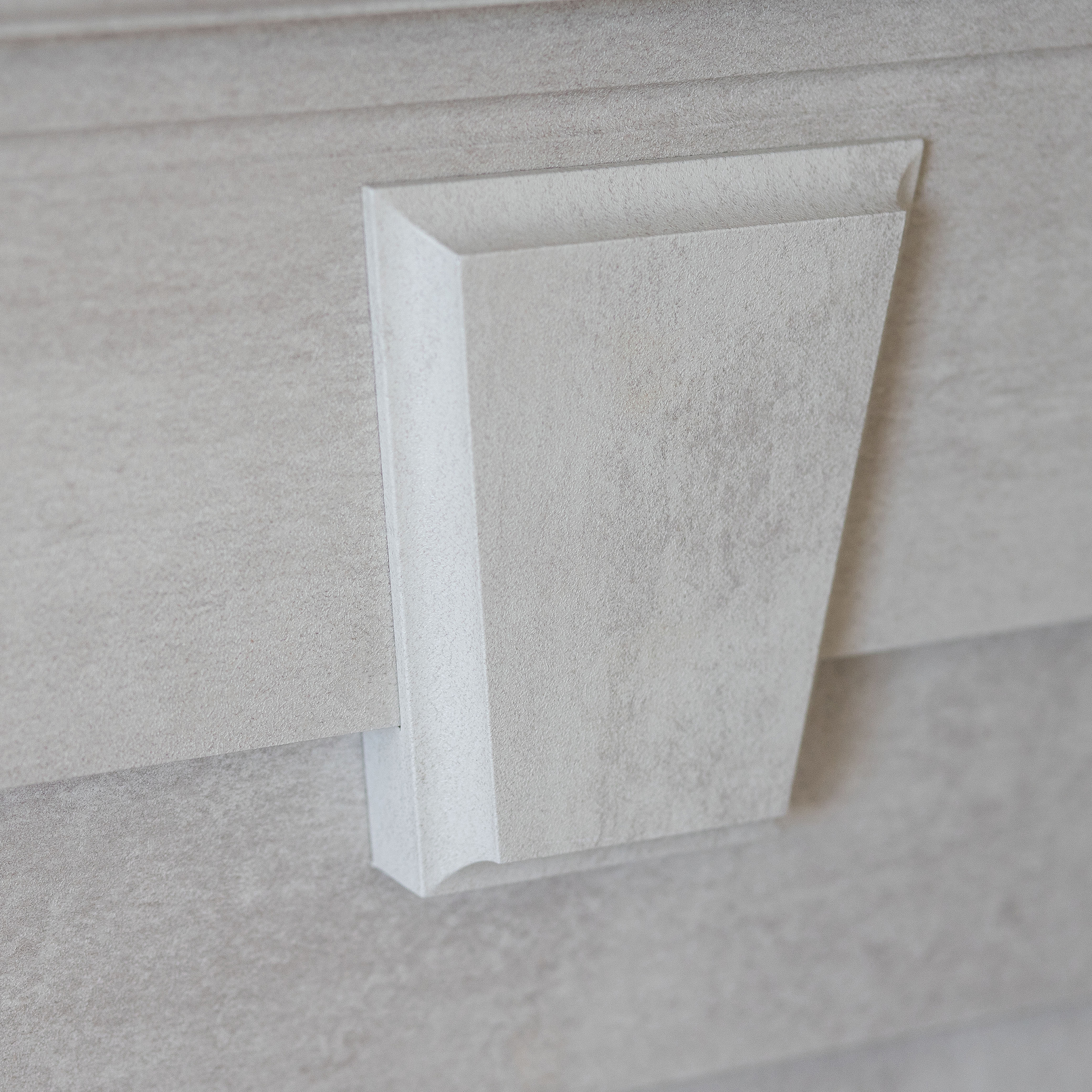 - Портал станет ярким акцентом современного интерьера, благодаря лаконичности форм и оригинальности текстуры. Сдержанный дизайн обрамления с элементами замкового стиля подчеркивается природной фактурой под натуральный камень. Такой камин добавит в обстановку комнаты солидности, а светлый оттенок портала визуально не перегрузит пространство.