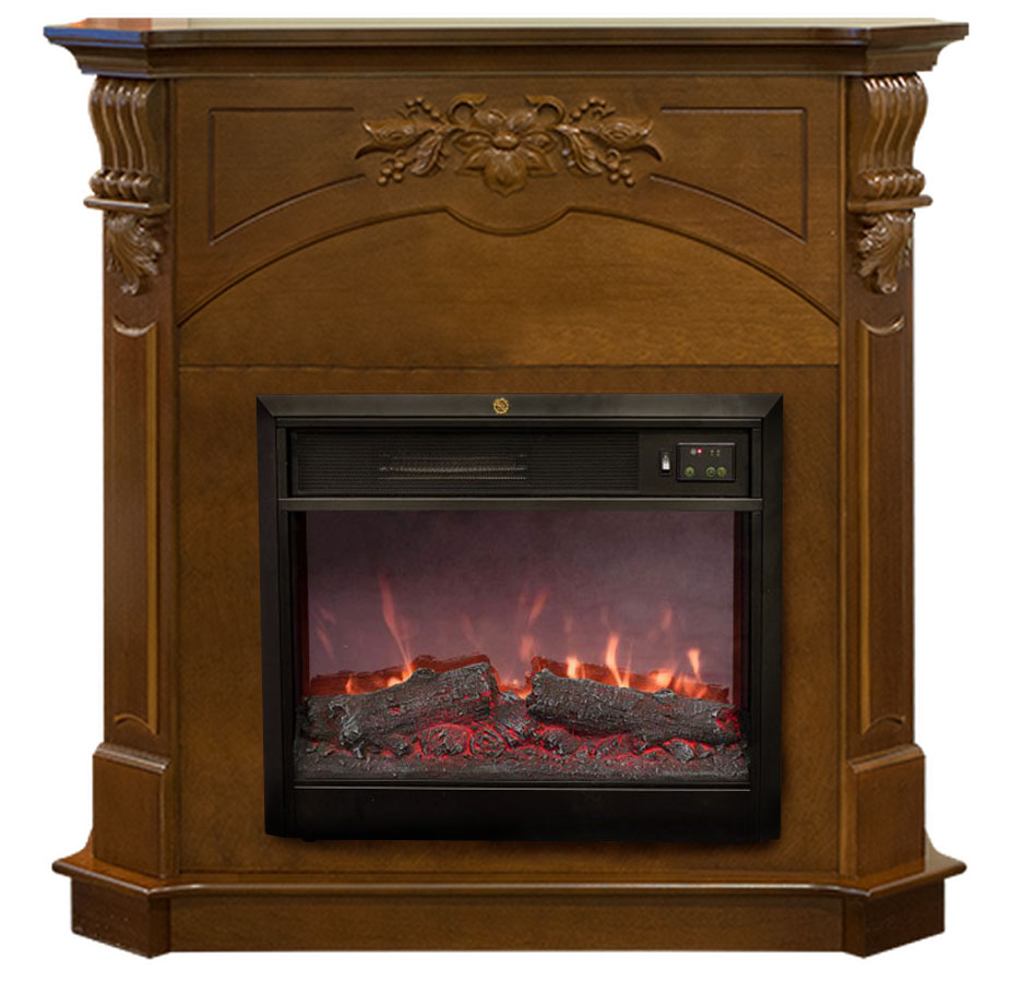 - В электрокамин встроен электрообогреватель, работающий в двух режимах обогрева и в декоративном режиме - только имитация пламени и горящих дров. Управление всеми функциями электрокамина, осуществляется с пульта д/у.