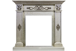 Зона очага изысканно обрамлена витым орнаментом, импосты и колонны, расположенные по бокам портала, не имеют яркой выраженности и обозначены лишь легким классическим барельефом.