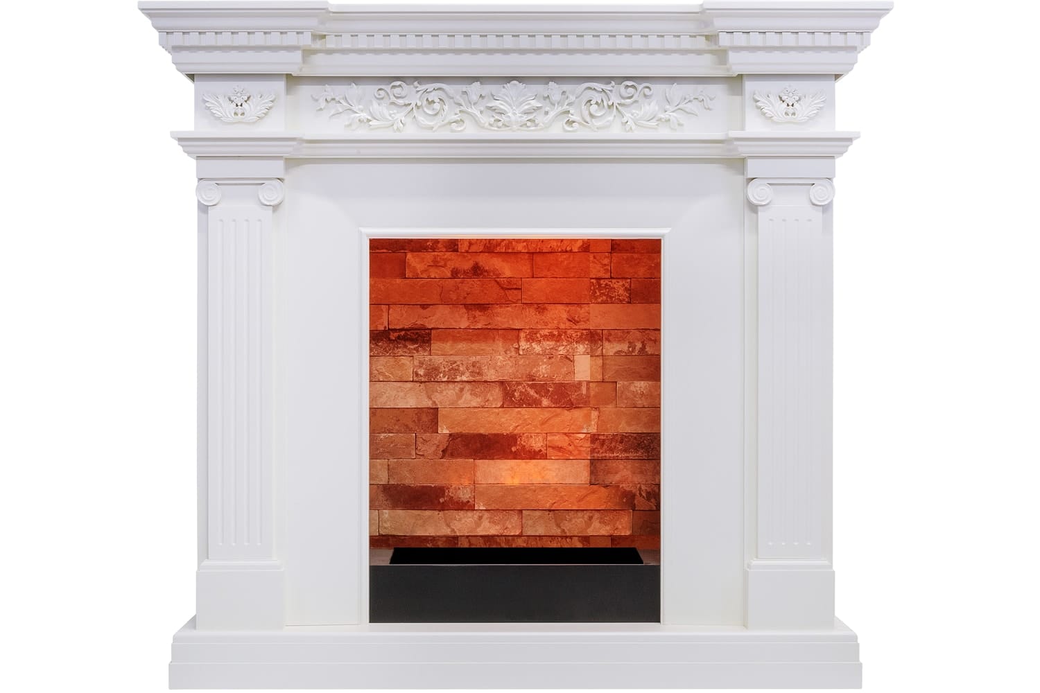 Каминокомплект Dimplex Amalfi выполнен в античном стиле. Изящный лепниной барельеф украшает фронтон и кронштейны античных колонн, расположенных по бокам портала. Цветочный орнамент придает легкую утонченность строгим линиям обрамления очага, а высокий подиум визуально вытягивает портал и завершает элегантный силуэт камина. Портал отлично подойдет как для размещения в городской квартире, так и в загородном доме.