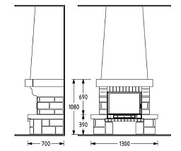 - Размеры очага ШхГхВ, (мм) 564x216x351