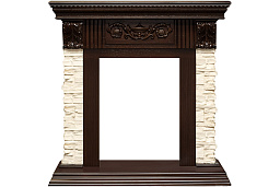 Обрамление для камина сделано из высококачественных материалов. Резной декор украшает фронтальную поверхность портала, а зона очага обрамляется изящными колоннами.