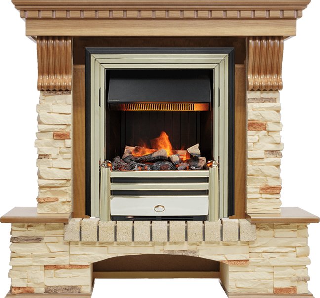 Электрокамин выполнен в золотом цвете. Золото – это материал, который никогда не выйдет из моды, это свидетельство безупречного вкуса и верности традициям. Цвет золота подчёркивает неповторимый стиль и необычность этого камина. К очагу можно подобрать любой портал, который подойдет к вашему интерьеру и станет его лаконичным продолжением. В очаге Dimplex Cavendish применяется эффект «живого» пламени Opti-Myst, в основу которого заложен инновационный принцип имитации огня – в очаге мерцает пламя, практически неотличимое от настоящего. В камине используется муляж дров ручной работы, которые невозможно отличить от настоящих поленьев, а благодаря подсветке создается полная имитация жарко пылающего очага.