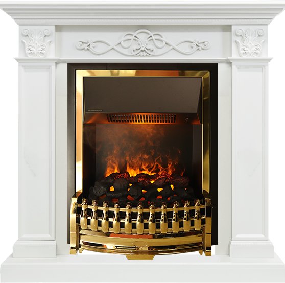 Электрический очаг Dimplex Atherton серии Opti-Myst с эффектом реального пламени. Этот стильный классический очаг в обрамлении золотого цвета предназначен для встраивания в порталы, выполненные в классическом стиле.