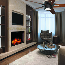 В качестве внутреннего декора используются стильные прозрачные кристаллы и разноцветная галька. Подсветку кристаллов и яркость пламени можно регулировать – доступно 4 возможных варианта. Модель дополнена звуковой имитацией потрескивания дров.
