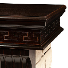 Порталы из камня обычно имеют в качестве декор и деревянные элементы. В целом такие камины смотрятся очень эффектно и ни в чем не уступают настоящим дровяным очагам. Помимо эстетических характеристик такие порталы имеют еще и высокие технические показатели: они безопасны просты в уходе.