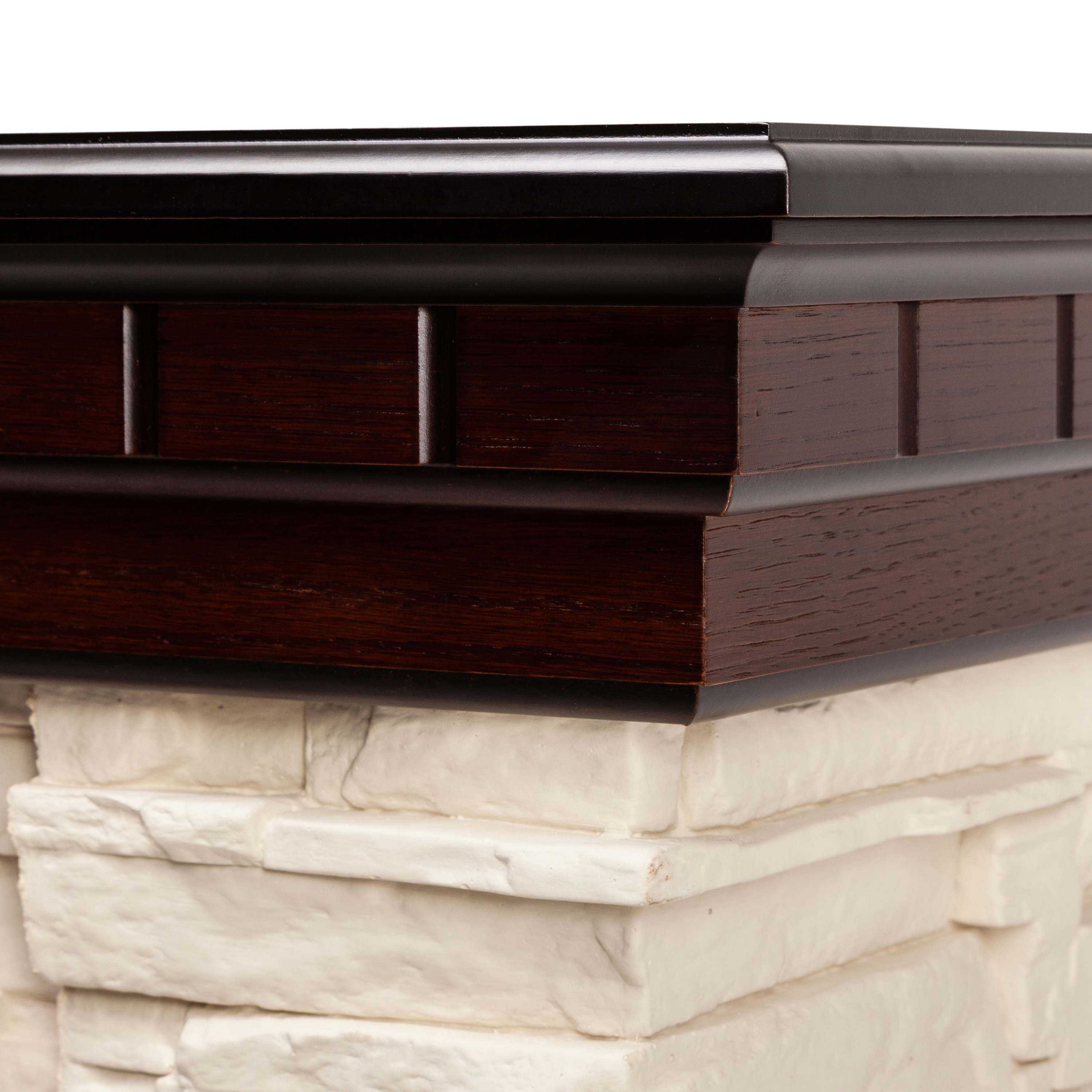 - Портал выполнен из шпонированного МДФ цвета античный дуб и искусственного белого камня.