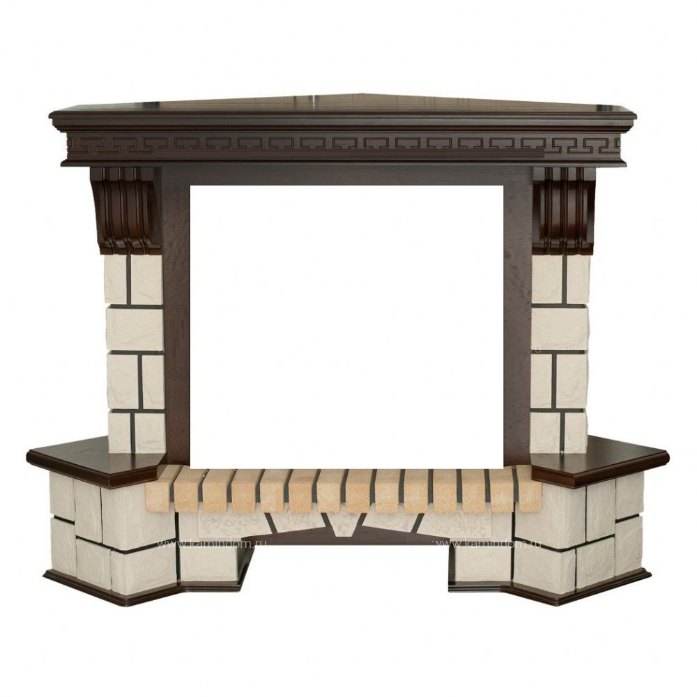 Угловой портал RealFlame Stone 26/HL AO античный дуб в стиле ""кантри"". Изготовлен из шпонированного МДФ и литого камня. Предназначен для очагов 26 дюймов.