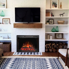 • Способность обогревать помещение. Камин электрический широкий хорошо подходят для комнат, где люди находятся временно.