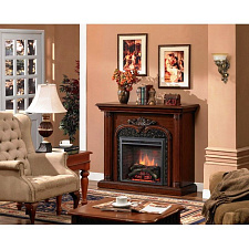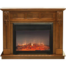Деревянные электрокамины Real Flame также имеют различные варианты декорирования самого очага и огня в нем. Это может быть имитация поленьев или углей, очаг может быть закрыт декоративным стеклом или нет. Такие очаги отлично дополнят интерьер в классическом стиле или в стиле модерн. В зависимости от модели деревянный камин может иметь различные дополнительные опции: регулировки подсветки, отдачи тепла, управление дистанционным образом и другие.